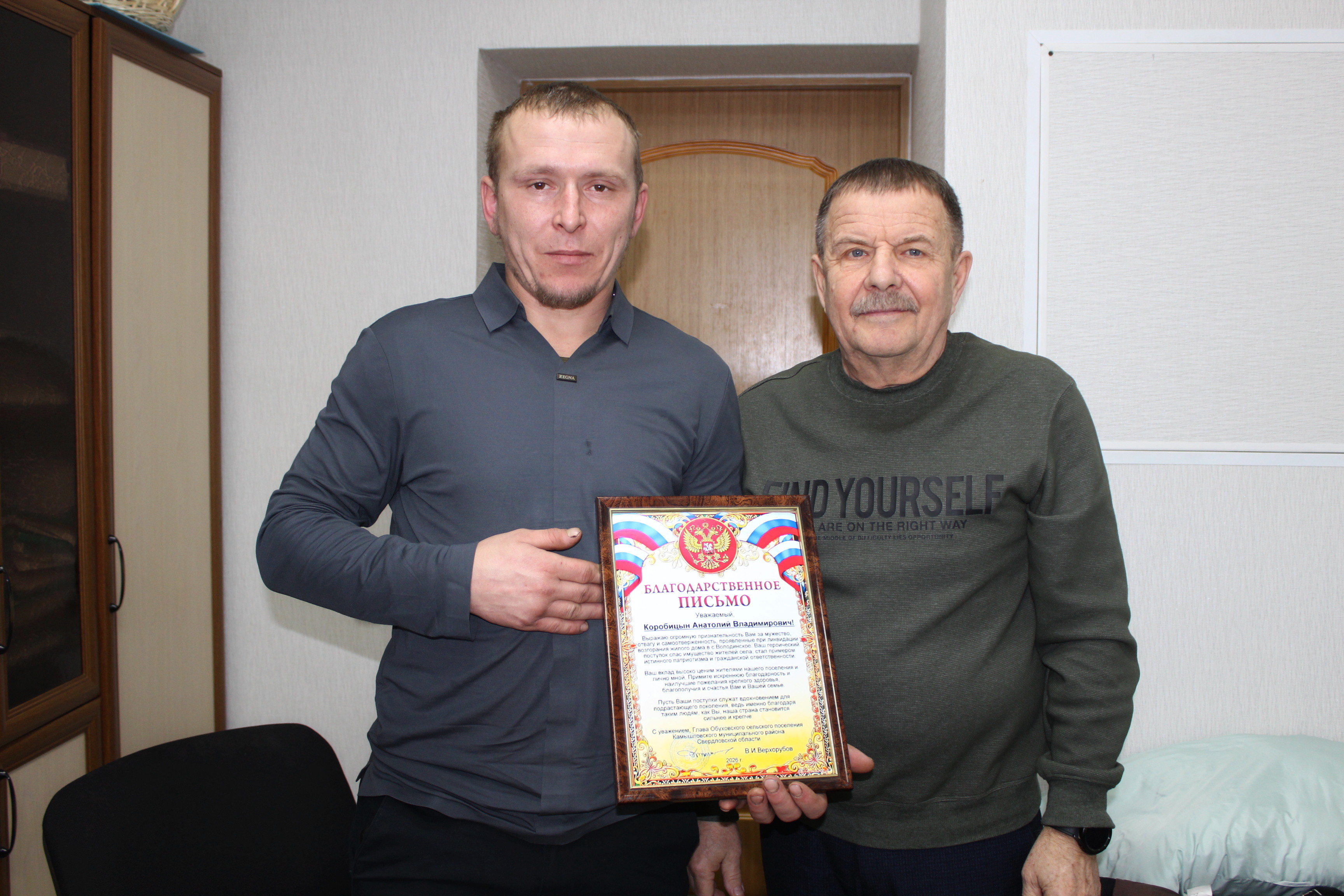В предновогоднюю морозную пору в селе случился пожар. У пожилой пары коротнула проводка, деревянный дом загорелся быстро. Анатолий, не теряя ни минуты, примчался на помощь на снегоходе.