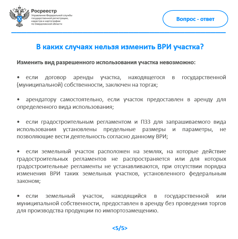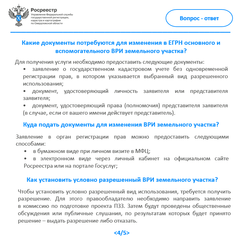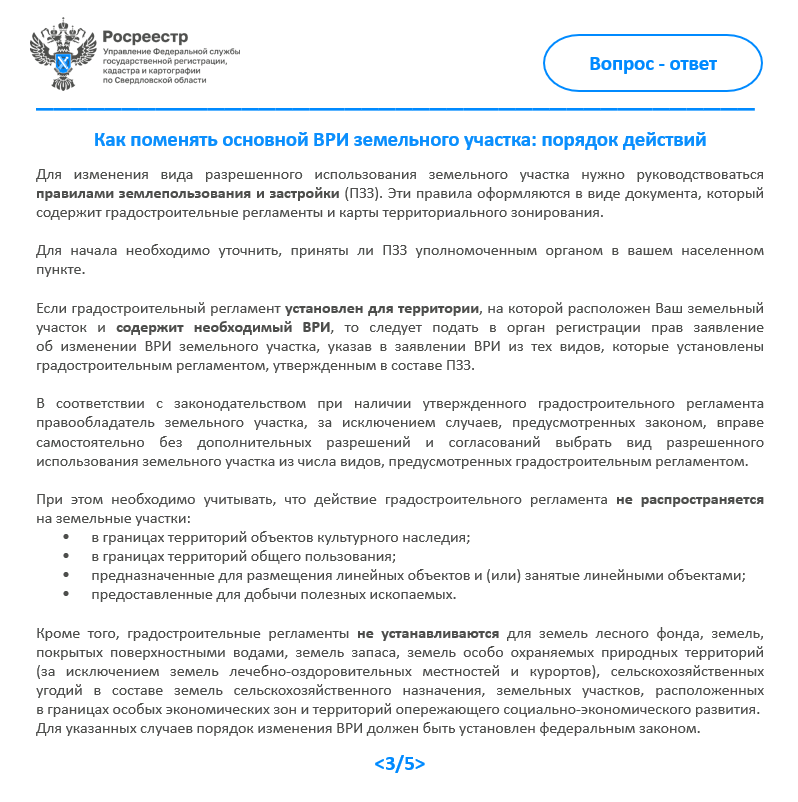 Свердловский Росреестр разъясняет: как изменить вид разрешенного использования земельного участка.