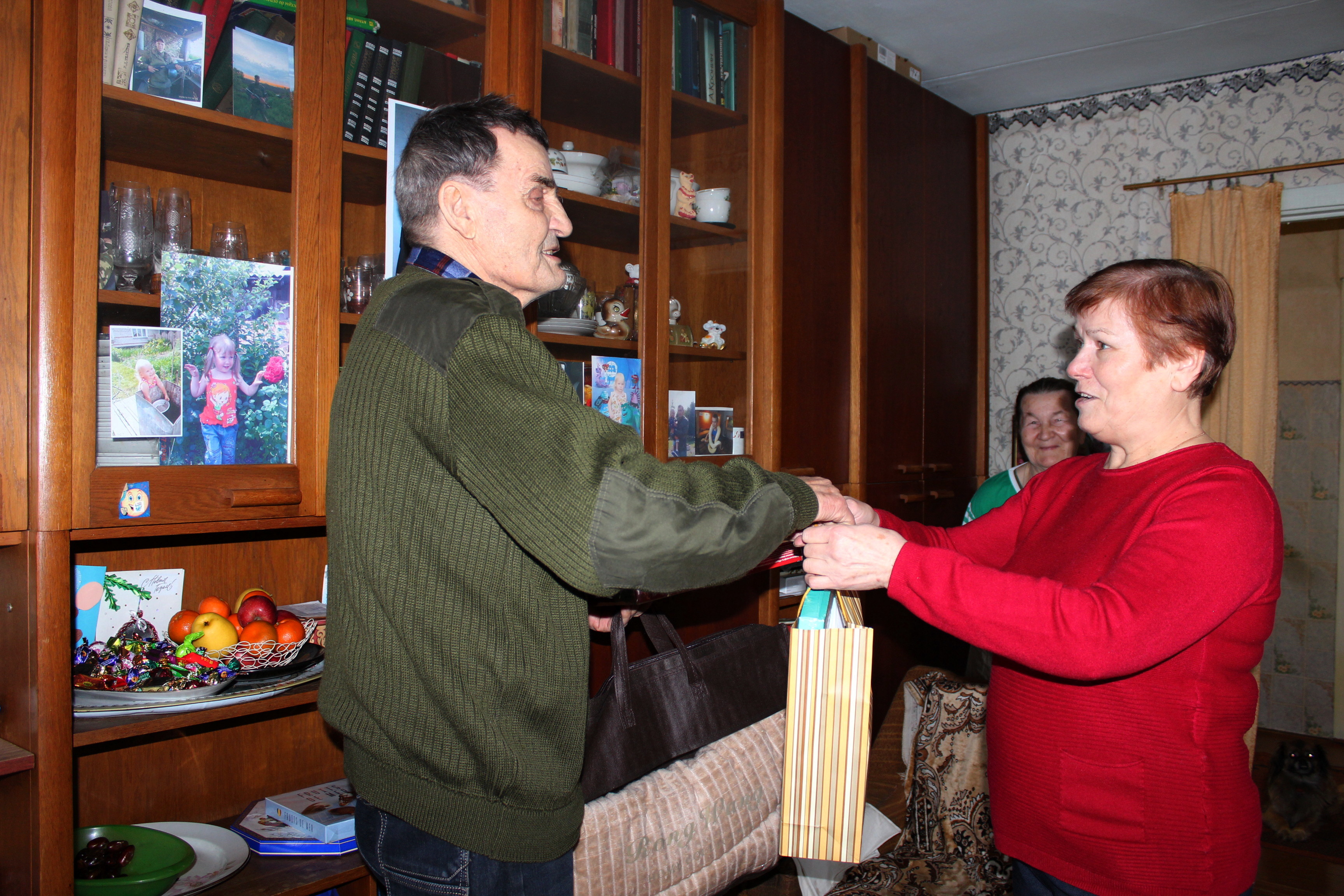 Поздравить юбиляра приехали заместитель главы Обуховского сельского поселения Калугина Наталья Сергеевна и председатель совета ветеранов Никифорова Наталья Поликарповна.