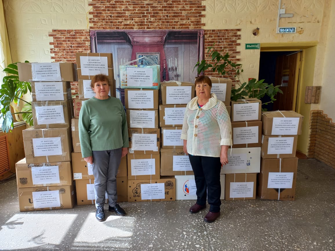 В селе Захаровское уже больше года ведется очень активная деятельность по сбору гуманитарной помощи, изготовлению сетей и окопных свечей для фронта.
