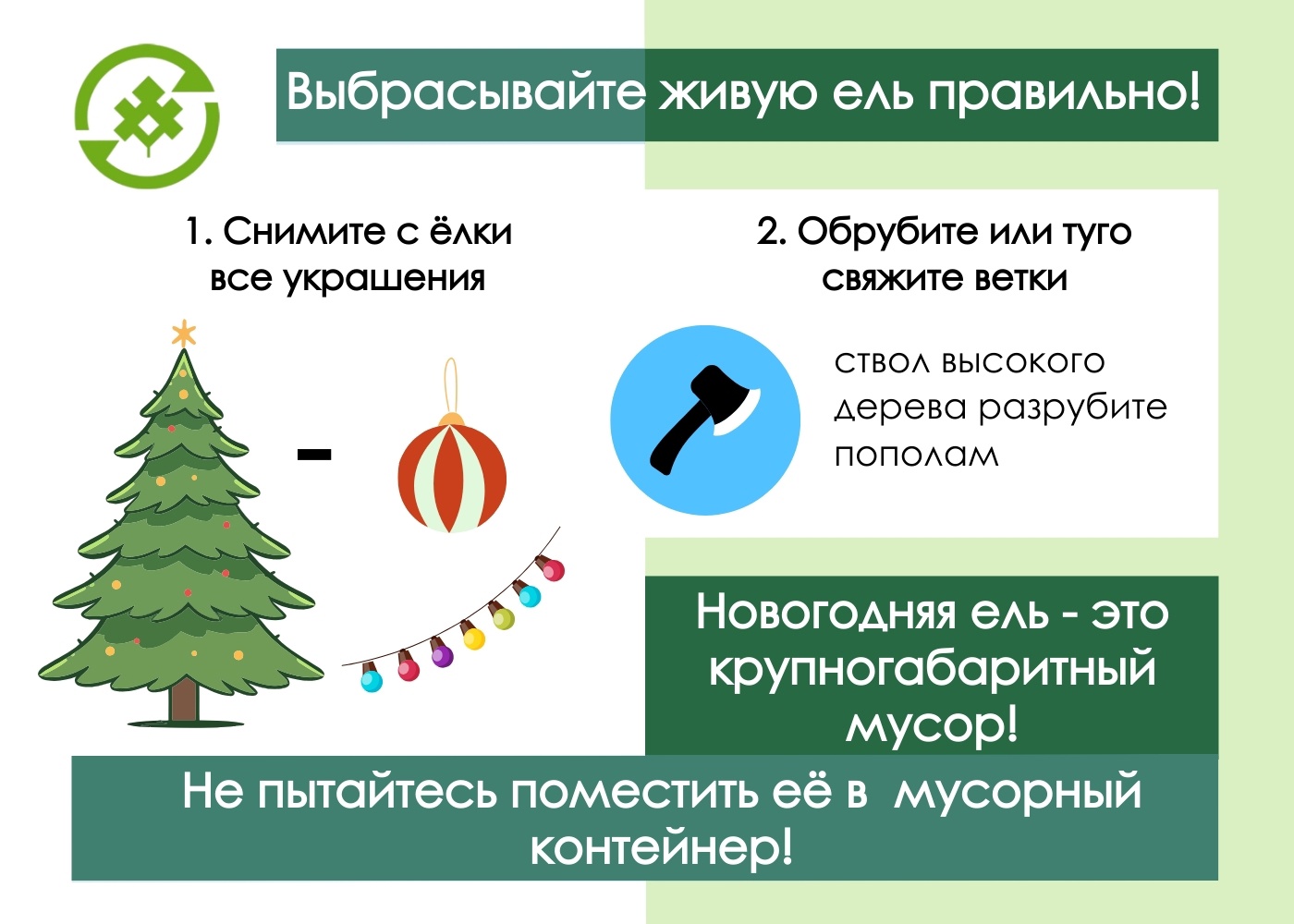 Обращаемся к жителям с просьбой соблюдать правила утилизации, чтобы обеспечить безопасный и эффективный вывоз отходов после новогодних праздников.