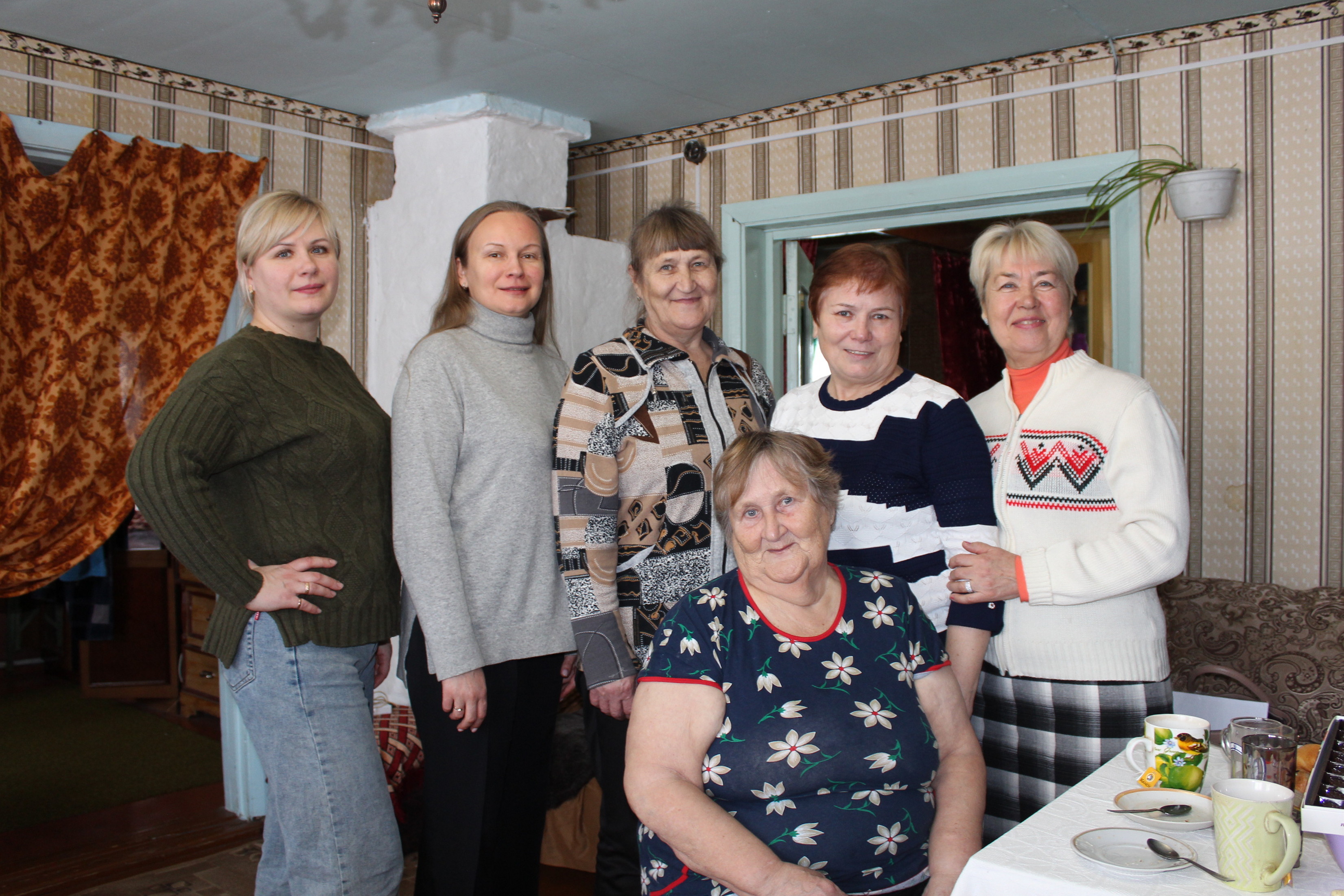 В этот день к ней в гости в с. Шилкинское с подарками и поздравлениями приехали заместитель главы Обуховского СП Калугина Н.С., специалист Обуховской администрации Мальцева С.В., специалист по соц. работе Пестикова Т.Н. и председатель местного Совета ветеранов Никифорова Н.П.