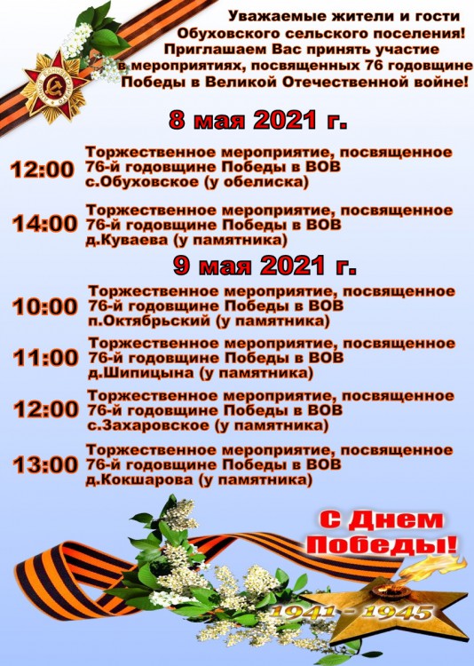 В связи с празднованием 76-годовщины Победы в Великой Отечественной войне 1941-1945 годов, на территории муниципального образования пройдет ряд мероприятий, посвященных знаменательной дате.